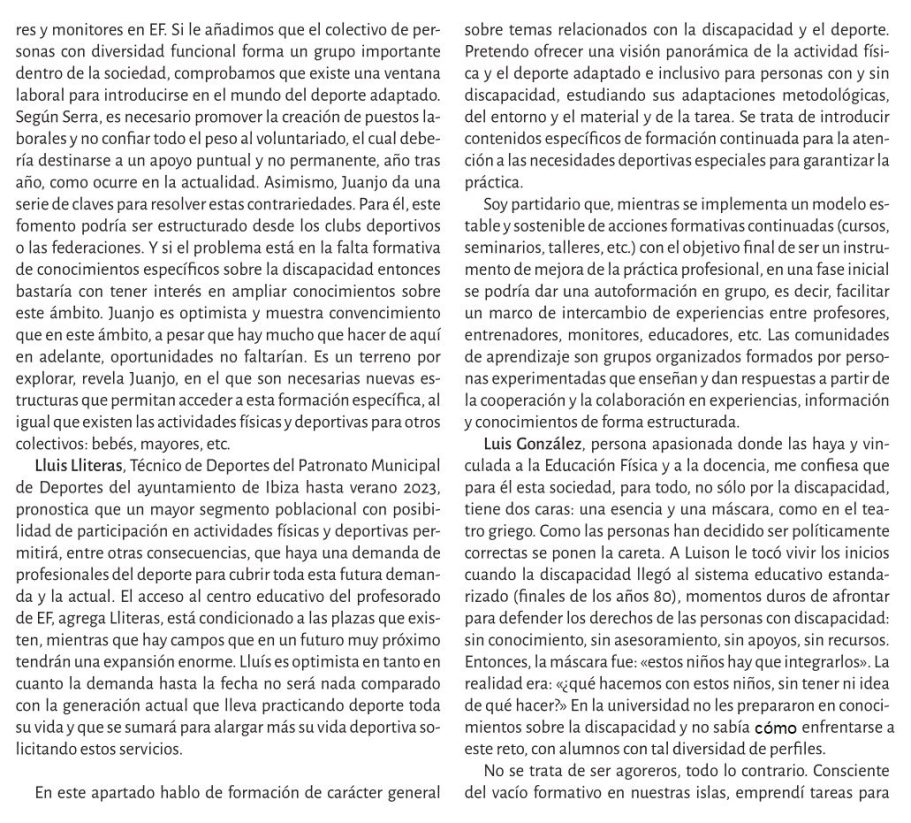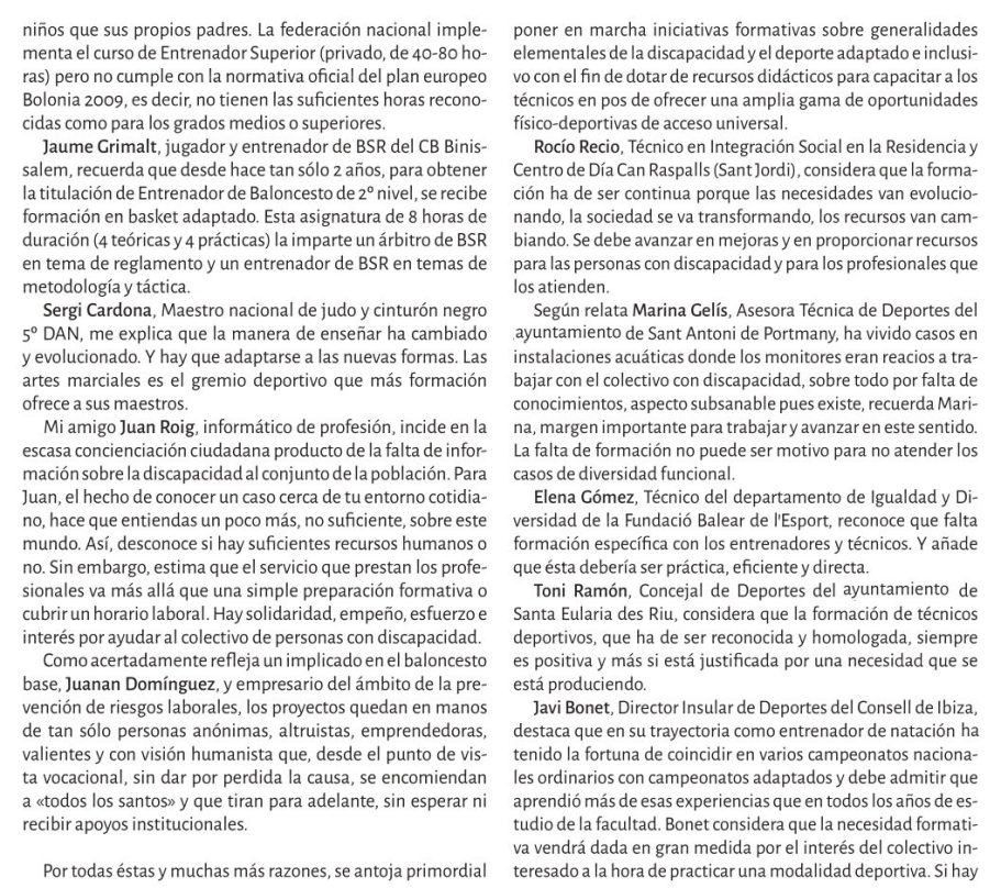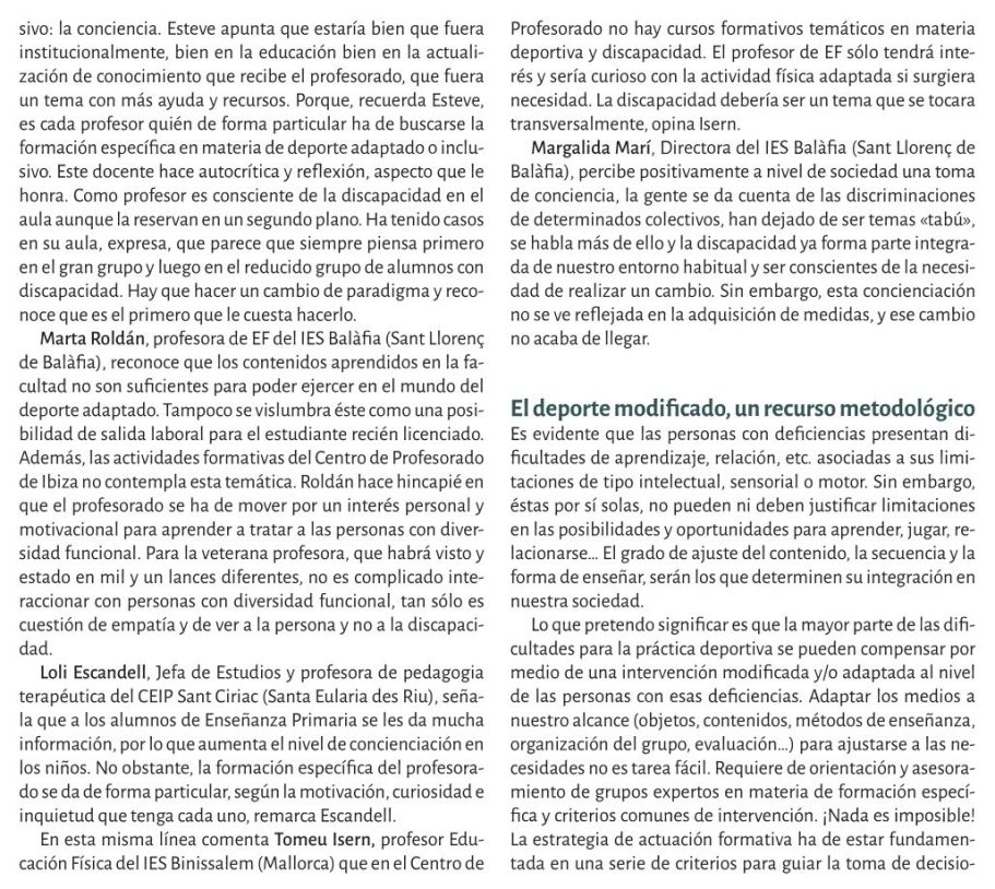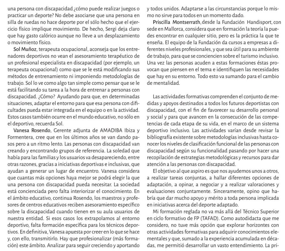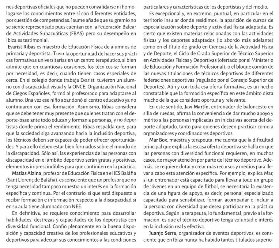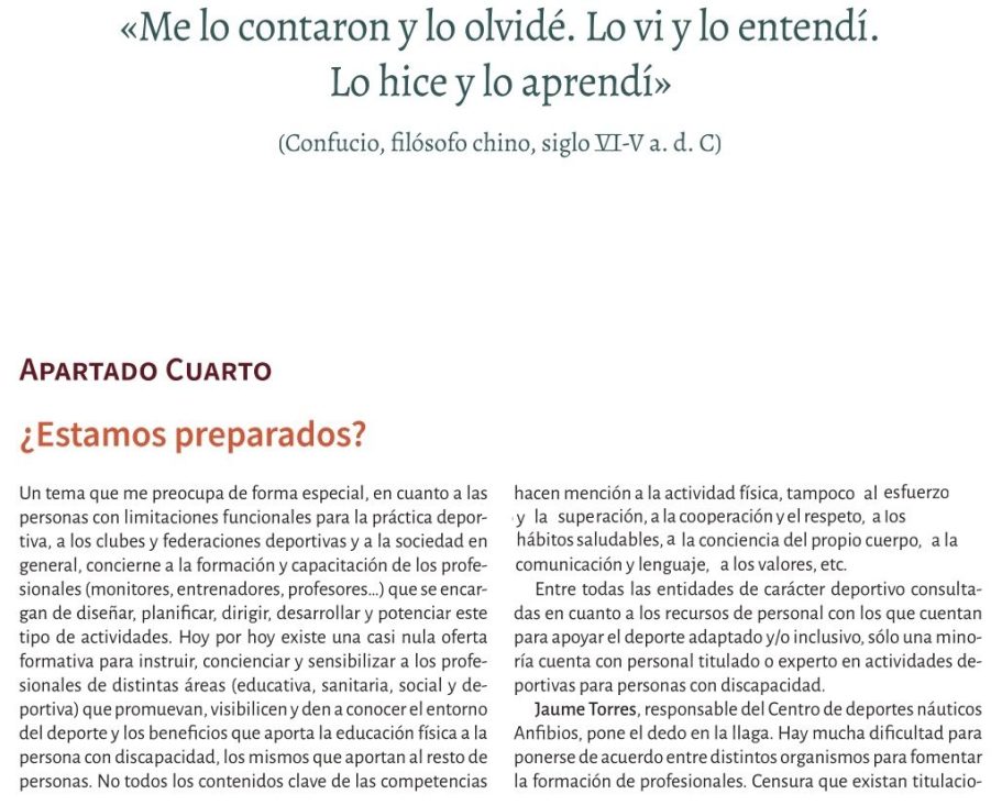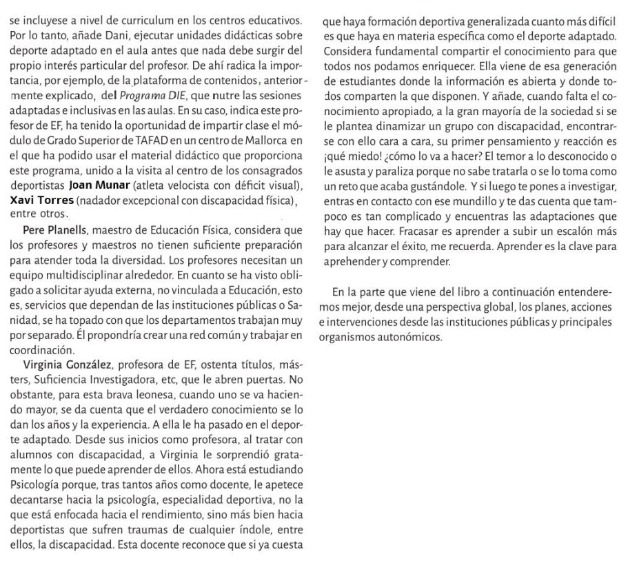 Reflexiona sobre la disposición de los espacios deportivos, los profesionales y la sociedad en general para integrar a personas con discapacidad en la práctica deportiva.