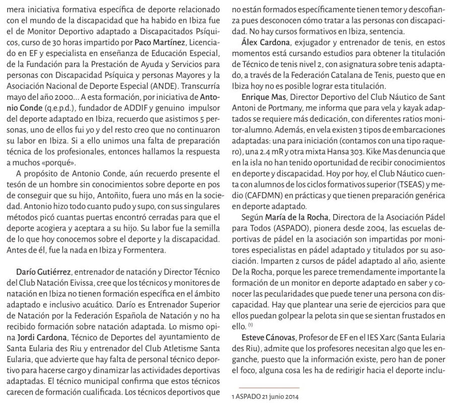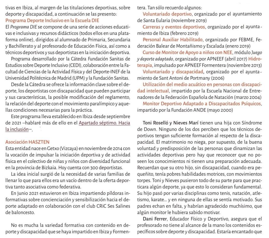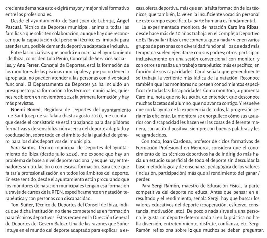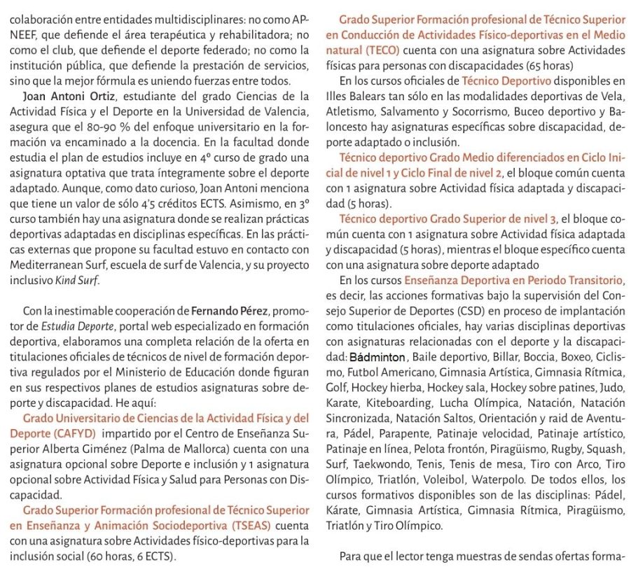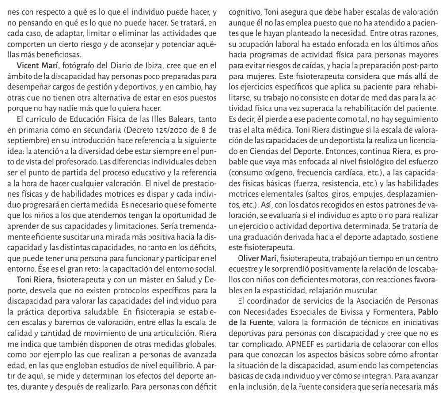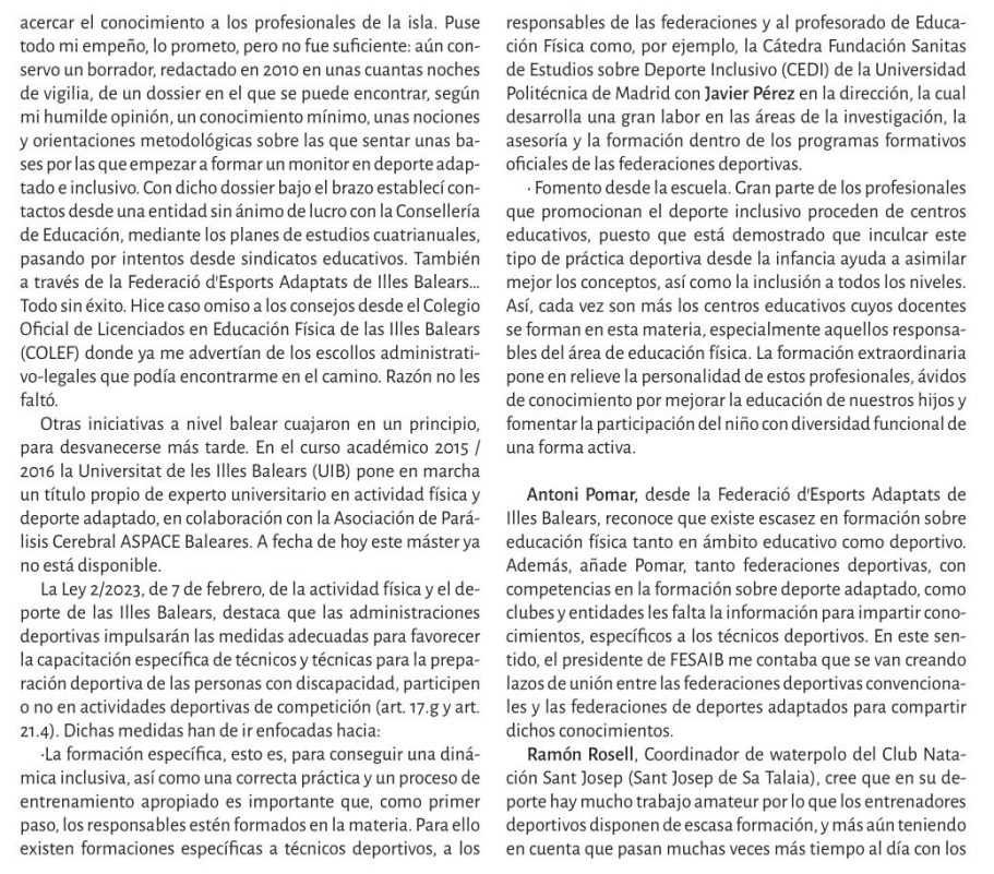 Reflexiona sobre la disposición de los espacios deportivos, los profesionales y la sociedad en general para integrar a personas con discapacidad en la práctica deportiva.