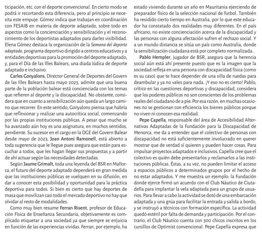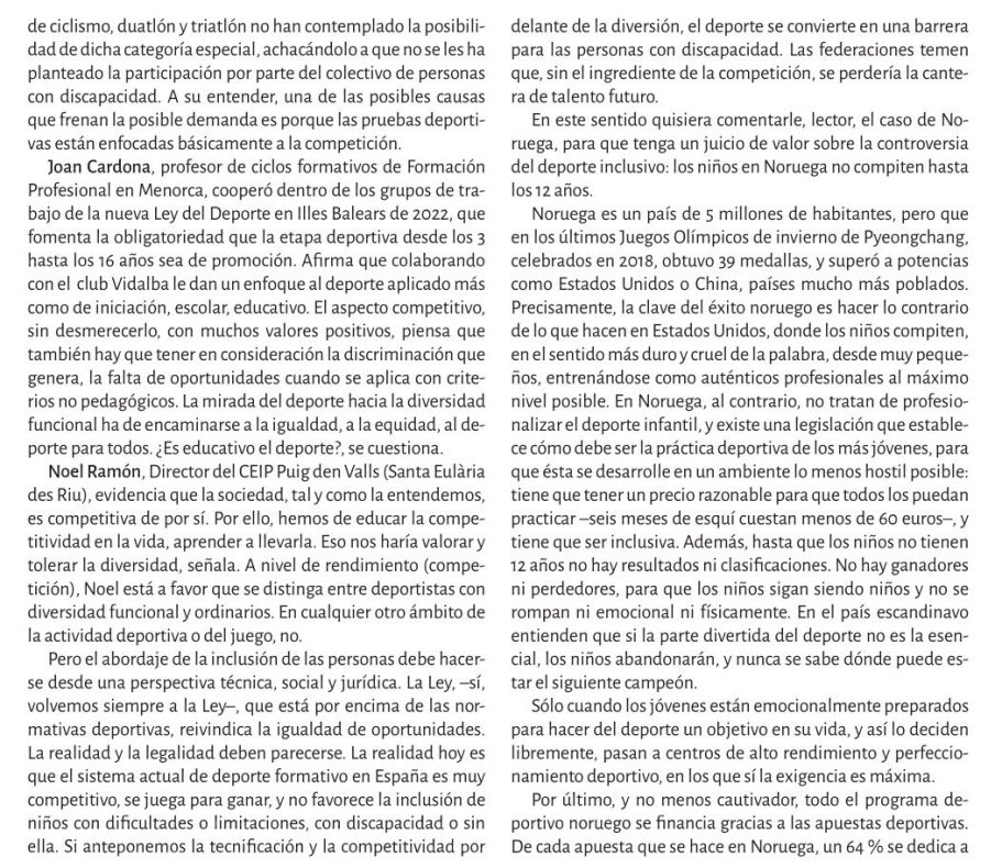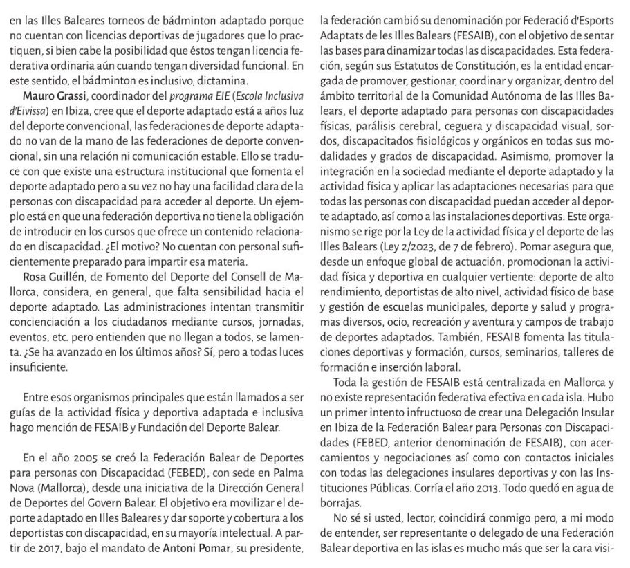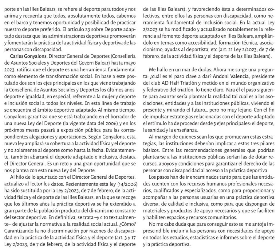 Enfatiza la importancia de continuar trabajando en la promoción del deporte inclusivo, reconociendo los avances logrados, las áreas de mejora y los desafíos que aún deben superarse para llegar a una verdadera participación activa del colectivo de perosnas con discapacidad.